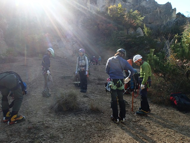 先週に引き続き今週も蓬莱峡でアイゼントレーニングからの担荷トレーニング。先週とは打って変わって気持ちの良い快晴、絶好のトレーニング日和でした。