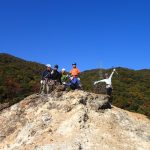 1時間経ったところで小休憩。まだ登りの半分くらいと聞きガックリ来るが、とにかく一歩ずつ、バランスを崩さないように気をつけながら進むしかない。そうやって無心に登っていると岩原山(573m)に到着。ここで再び小休憩。