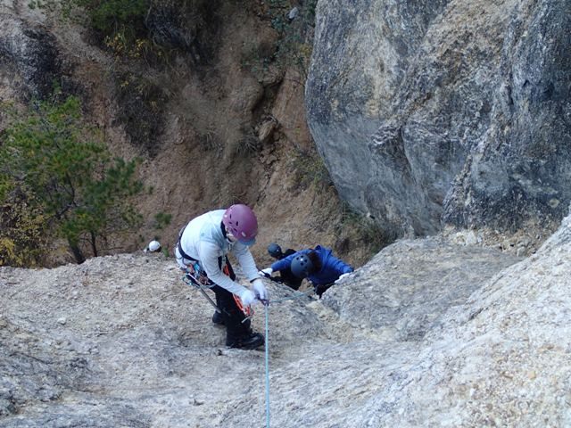 阪急宝塚駅8:27発のバスに乗り込みいざ出発。バスは蓬莱峡を目指す登山客で満員でした。知るべ岩で下車してしばらく歩くとトレーニング場所に到着。