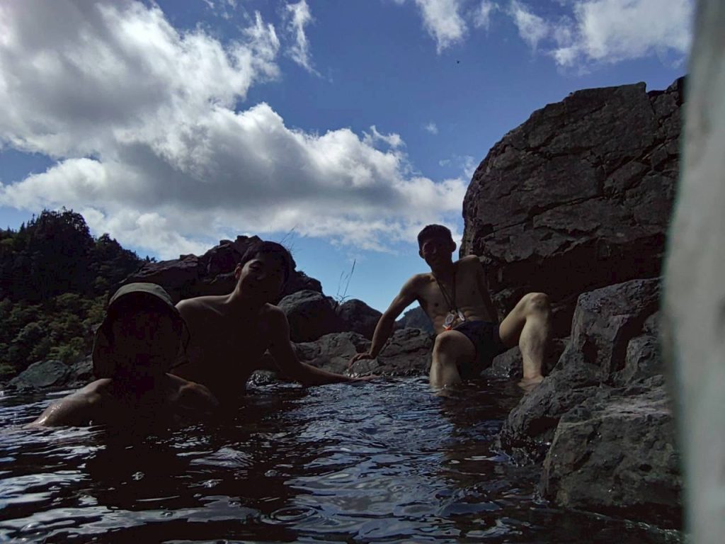 中の滝名物、水風呂。パンイチ2名、フル〇ン1名で入浴。