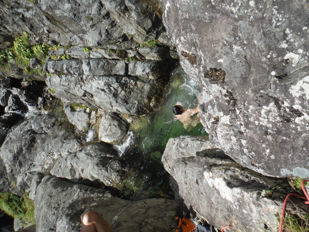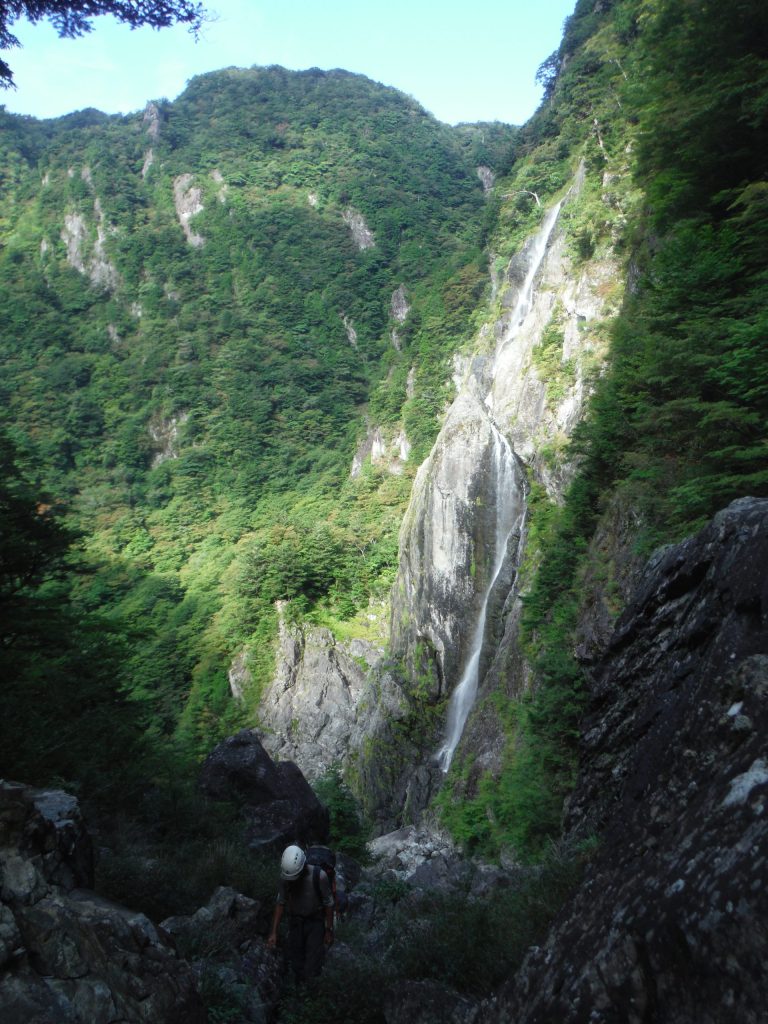 今回は一般的な乾いた右壁を登ったが、もし次の機会があれば水線突破もやってみたい。
