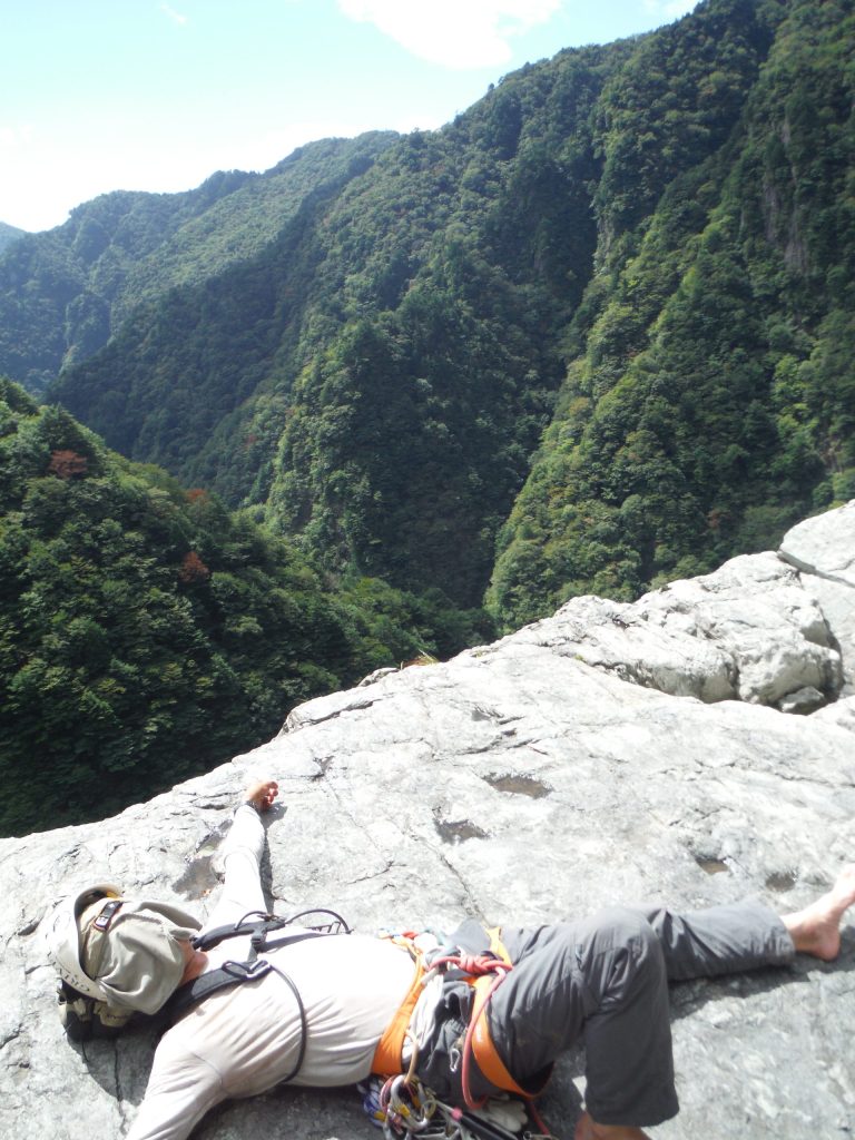4p目HJRさんリード。よくおぼえていないけど登り終えると「八畳テラス」。