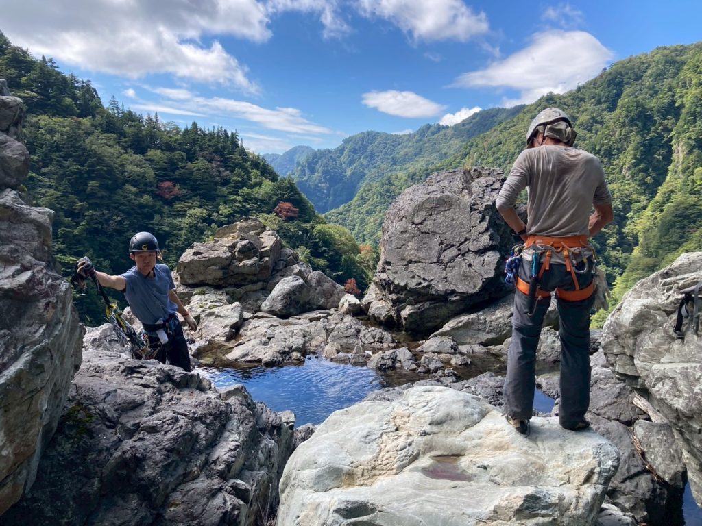 滝の登攀だけでなく、登り終わったあとには厳しいゴルジュが待ち構えているらしい。