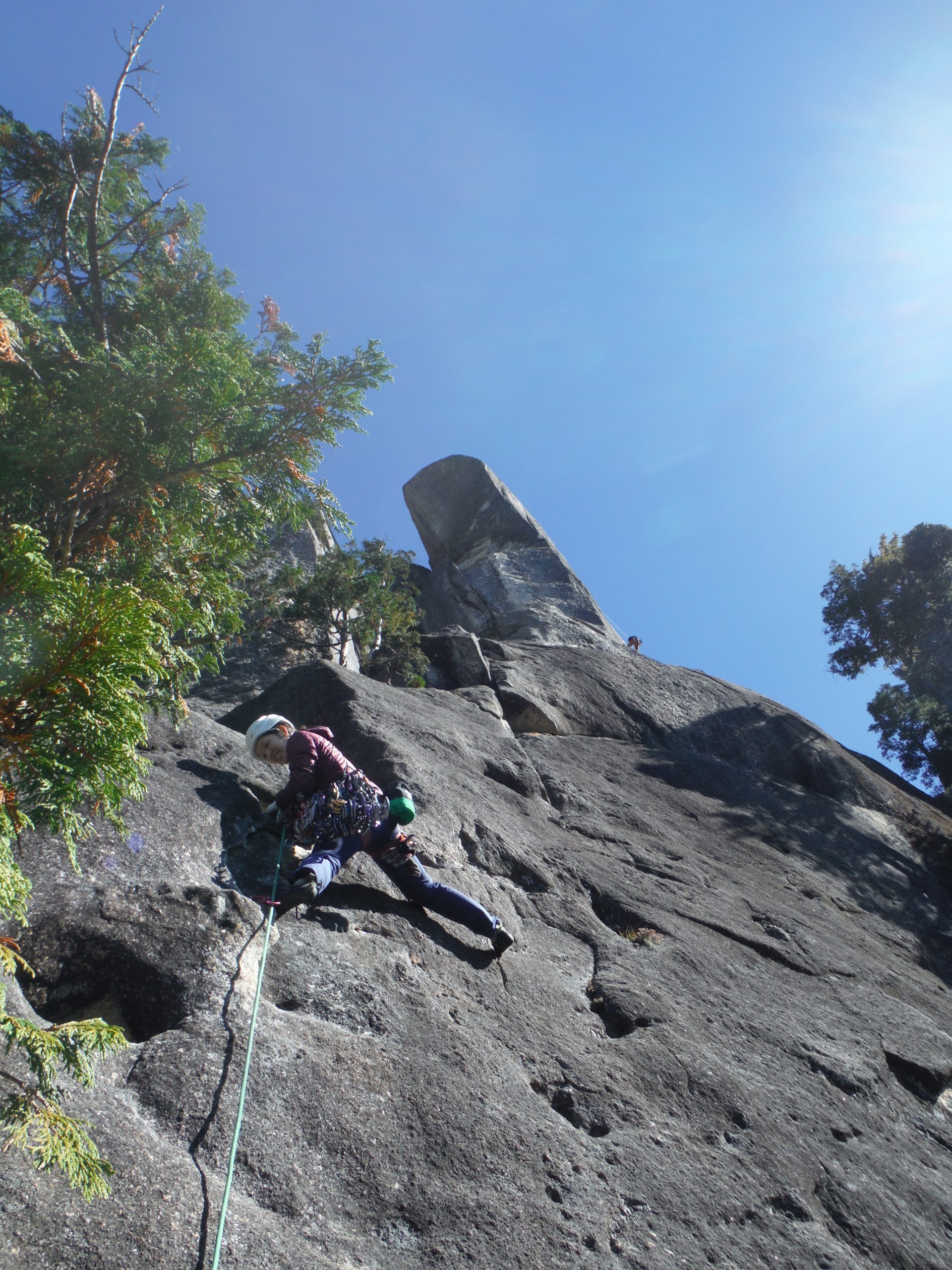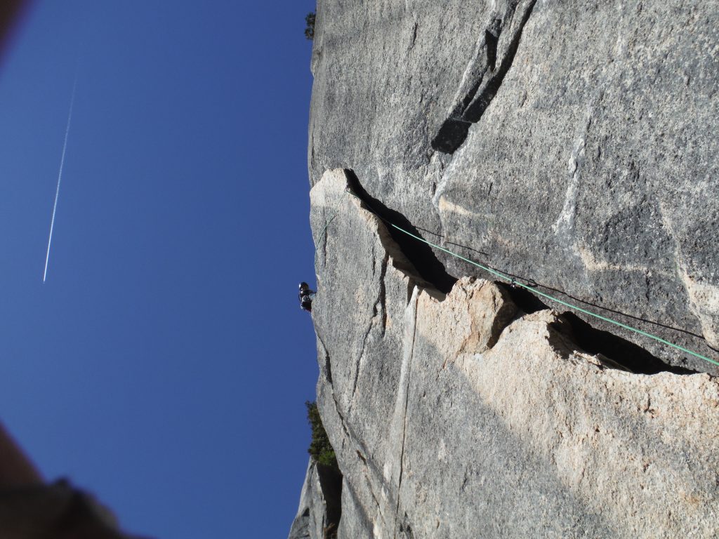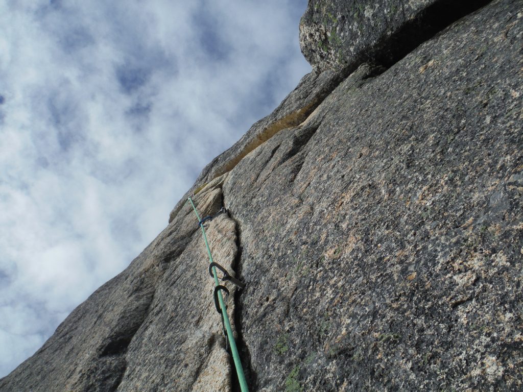 ワイド登りとレイバックで登る。このピッチのために5番カム1個を持って行ったが、4番2個あるならいらなかった。