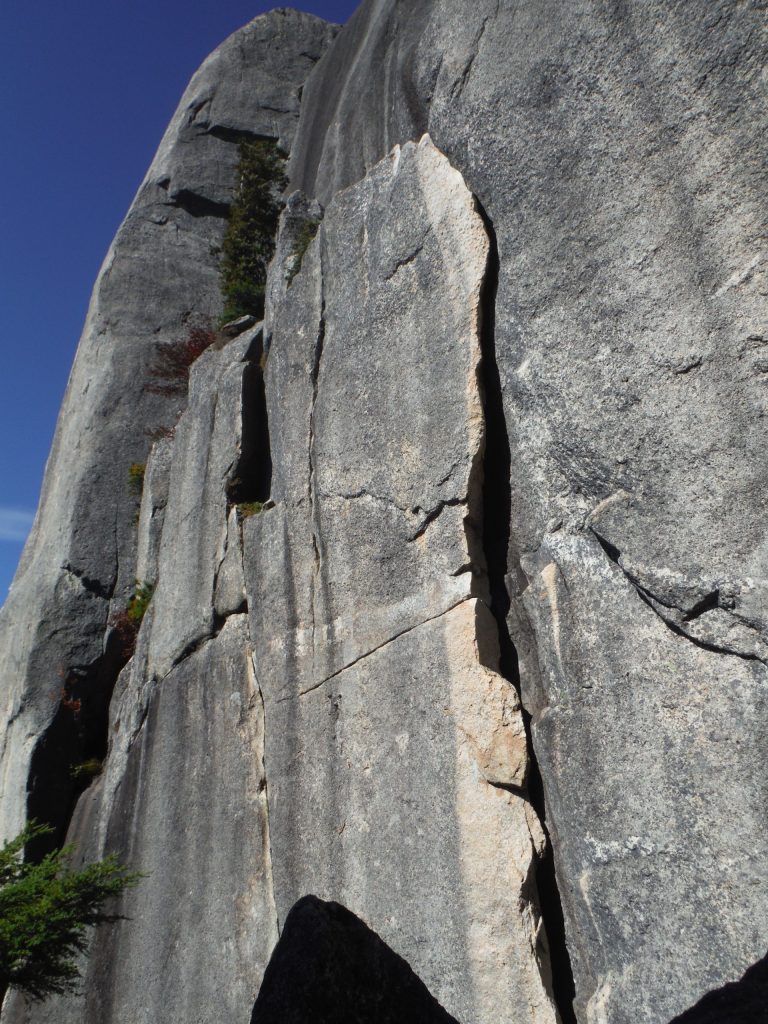 上半部は写真の左壁に走るワイドハンド~オフフィンガーサイズを登って、「シロクマのコル」にでる。