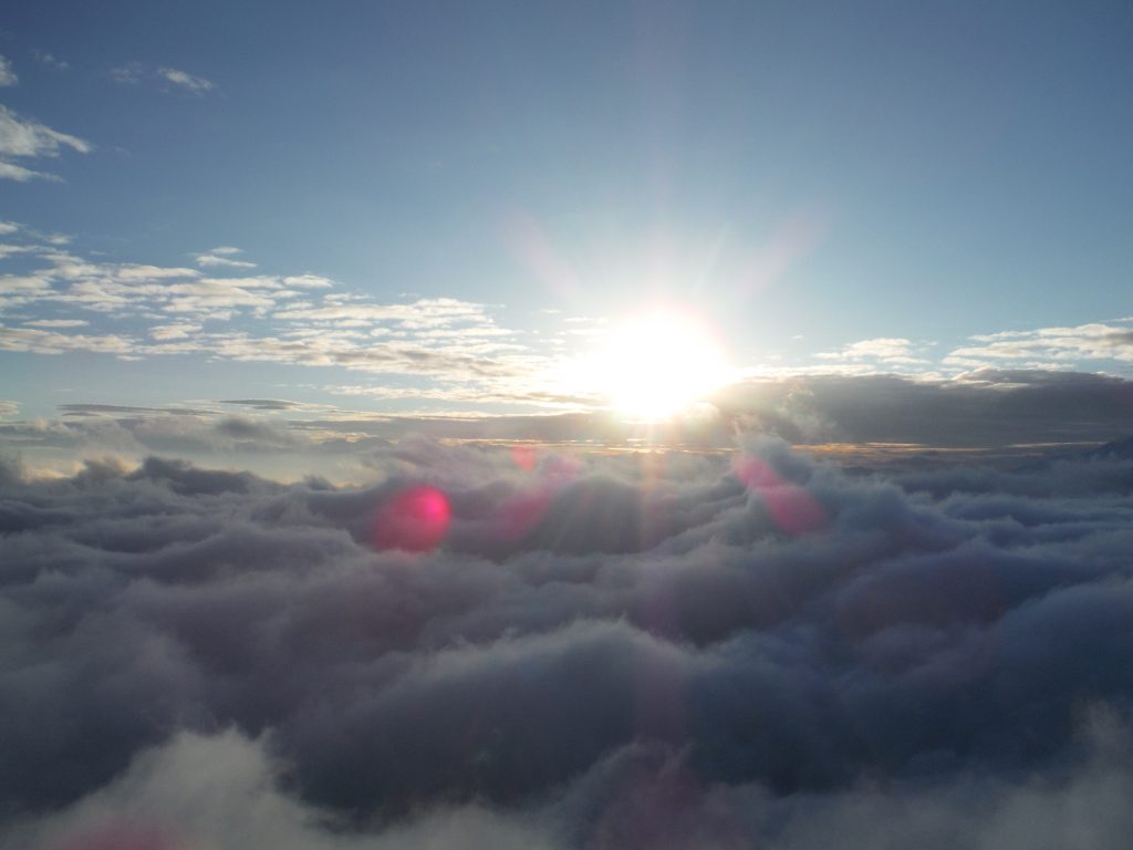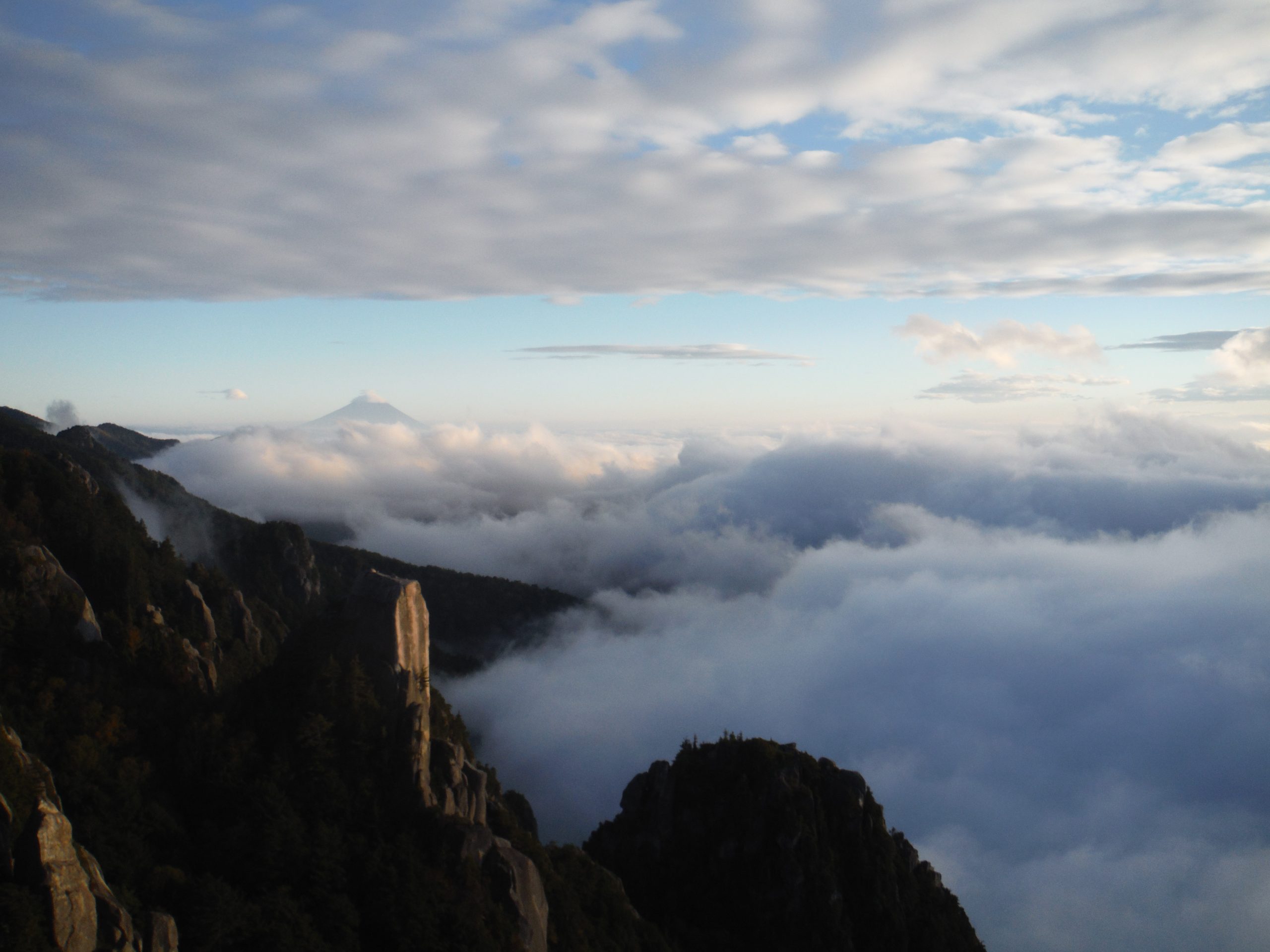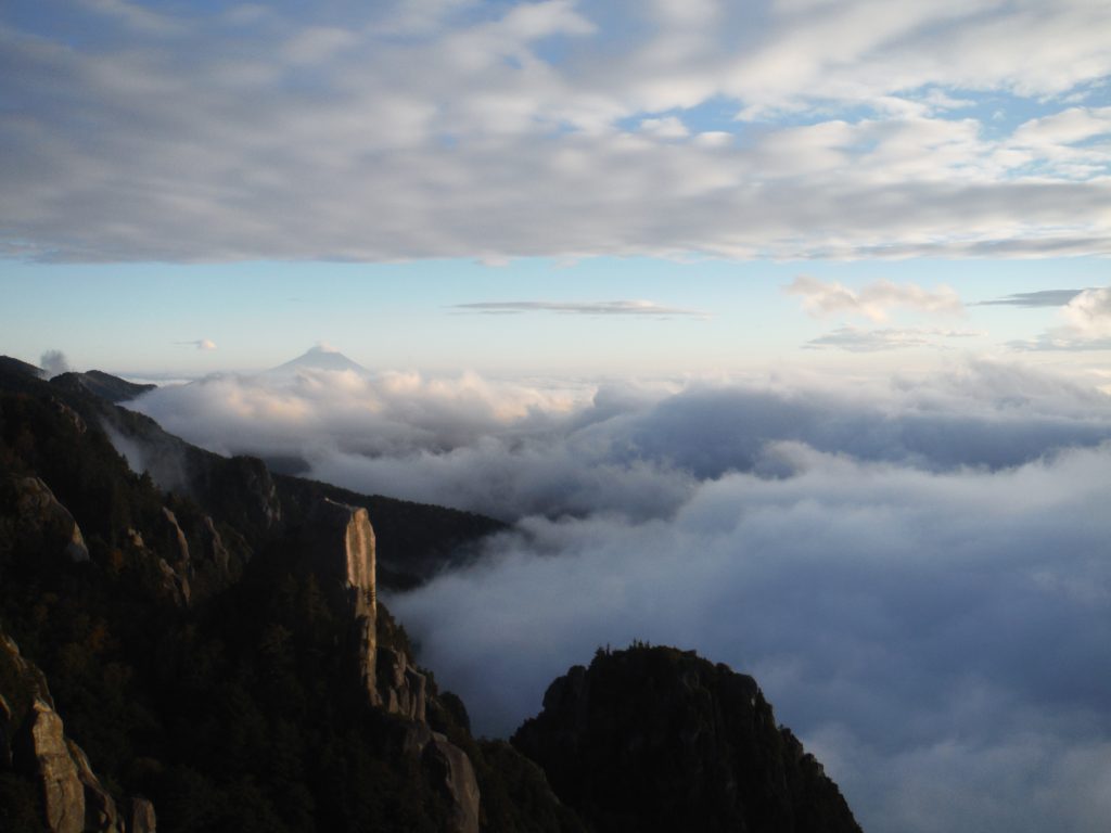 16:30、トップアウト。三畳ほどの山頂につくと眼下には雲海が広がっていた。