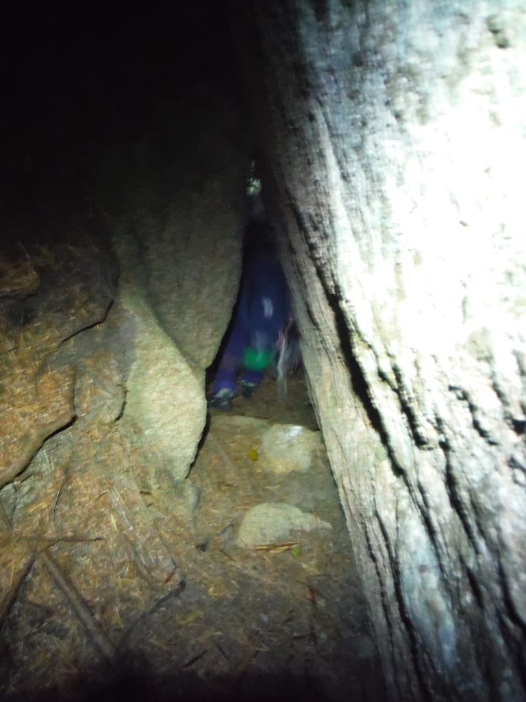 暗闇とガスで戻れるか不安だったが、見覚えのある2つの岩屋に合流でき、それを頼りに18:30頃取りつきに戻ってこれた。アプローチや下山は「瑞牆クライミングガイド」要参照。