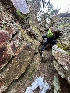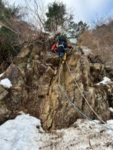 その後はCLのYSDがリードで登っていく。岩が脆く、ボロボロと崩れていく。
