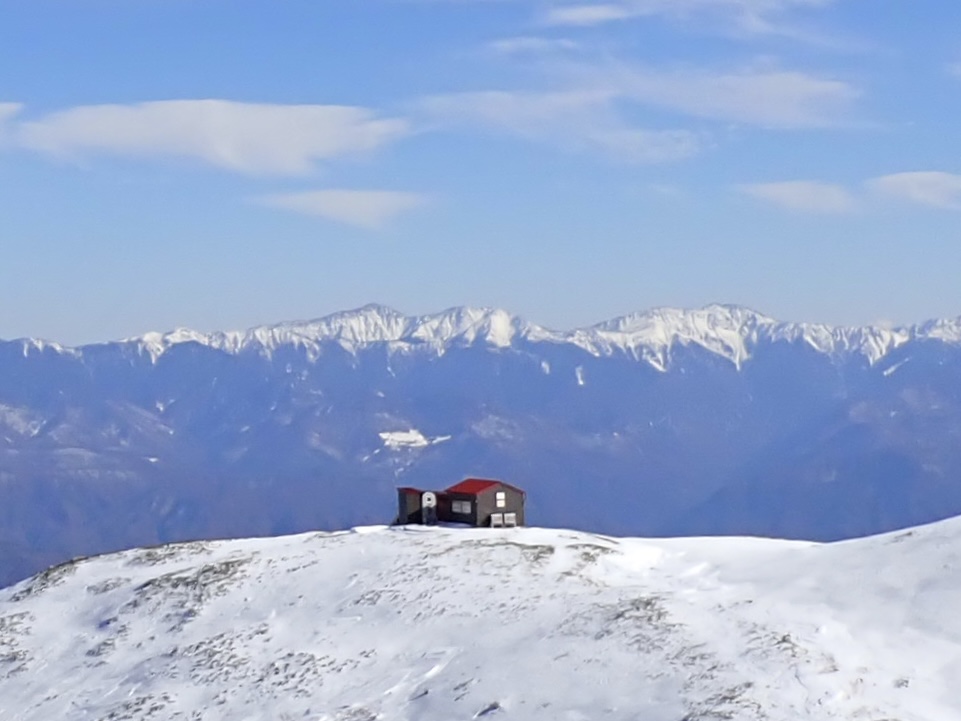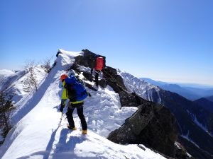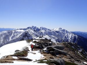 お天気が良くて素晴らしい絶景の中の稜線歩き。遠くに見える空木岳がとてもかっこ良し。昨秋にもこの縦走路を歩いたが雪を纏った峰々は段違いの美しさ。