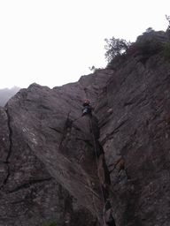 つるべで快調にクライミングを楽しむ 烏帽子岩は2人だけである