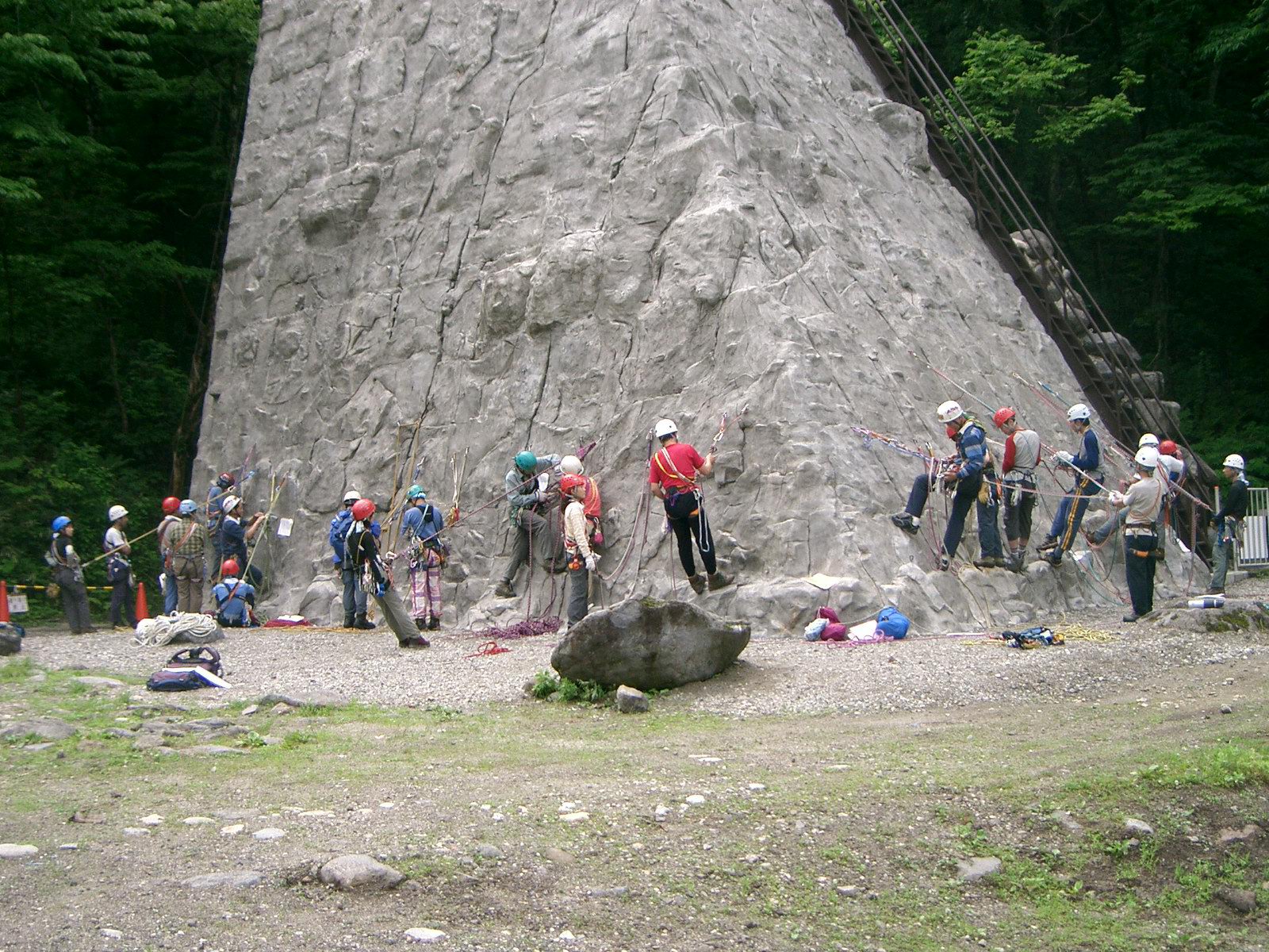 ・ロープの結び方、用具の使用方法、支点の取り方 ・懸垂下降 (支点の取り方、下降手順、器具の設定、) ・引き上げ1/3. 1/5 ・フィックスロープ登高器登高 ・索道ザイルの張り方、ゆるめ方