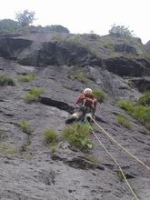 | 1ピッチ: | 最初の支点まで遠く、慎重に登る。 |