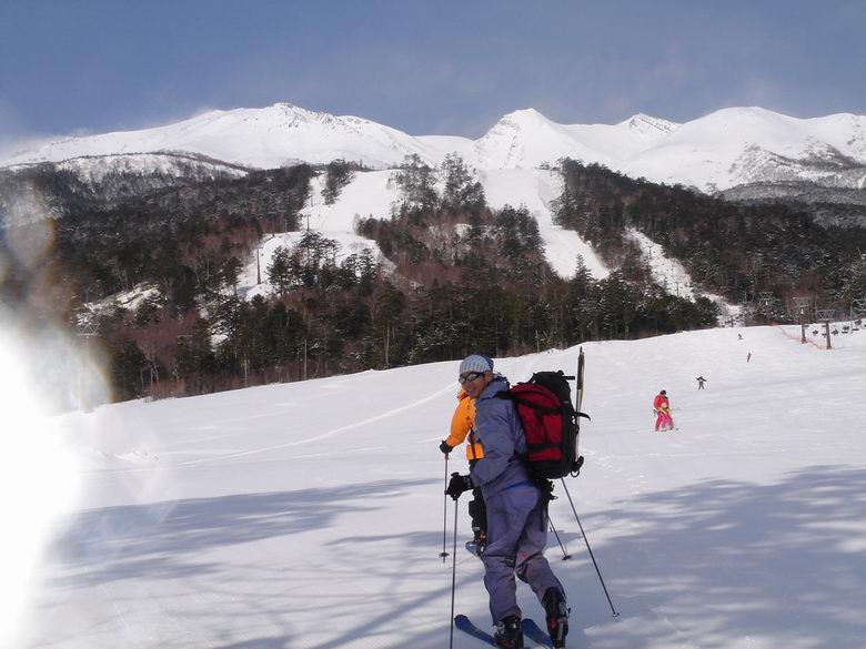 御岳ロープウェイスキー場からの山スキーに行ってきました。 時間切れで頂上は見送りましたが、 好天の下、 南アルプス・乗鞍岳を見ながらのスキーは快適そのものでした。 十分日帰りが可能なので (天候次第ですが) 土曜日『奇美世の滝』、 日曜日『御嶽山』という組み合わせはどうでしょうか? (↑どちらも中央道−中津川を下りるので) <その他メモ> ・朝、あてにしていたロープウェイが、強風のため運転休止。。。 風が強い場合は、はじめから歩くつもりで早起きが良いかも。 ・この時期はカリカリの残雪期かと思っていましたが、昨晩の降雪のせいもあって 雪質に文句は全く無し。 あとは上手く滑れるかどうか。。。 ・石室山荘付近は結構な急斜面で、スキーを外す。 表面はカリカリになる。 この辺は早めにアイゼンに切り替えた方が無難のようです。