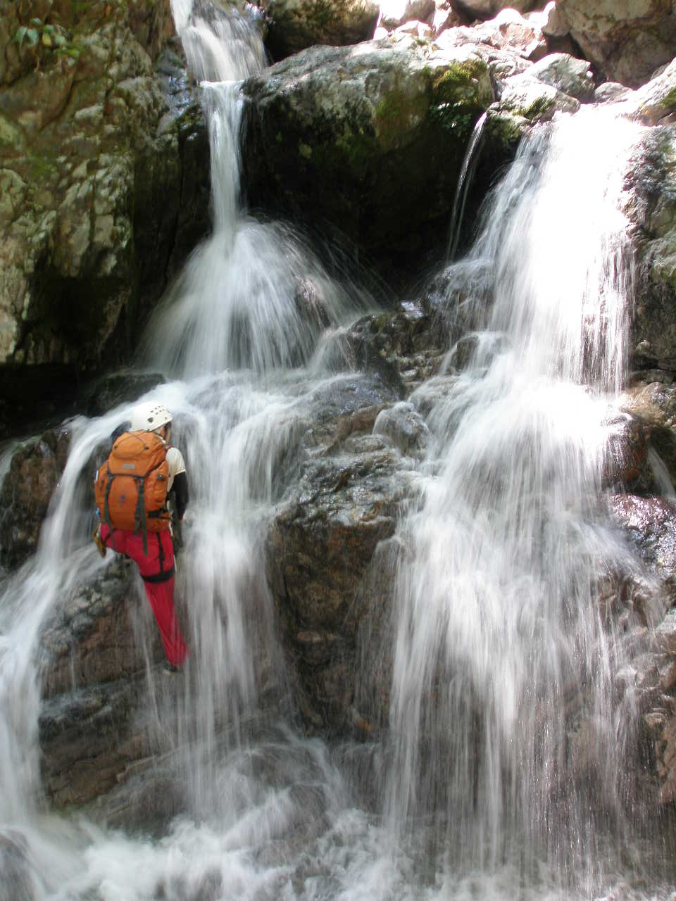 右岸から荷上げ。快適なシャワークライミングを満喫。